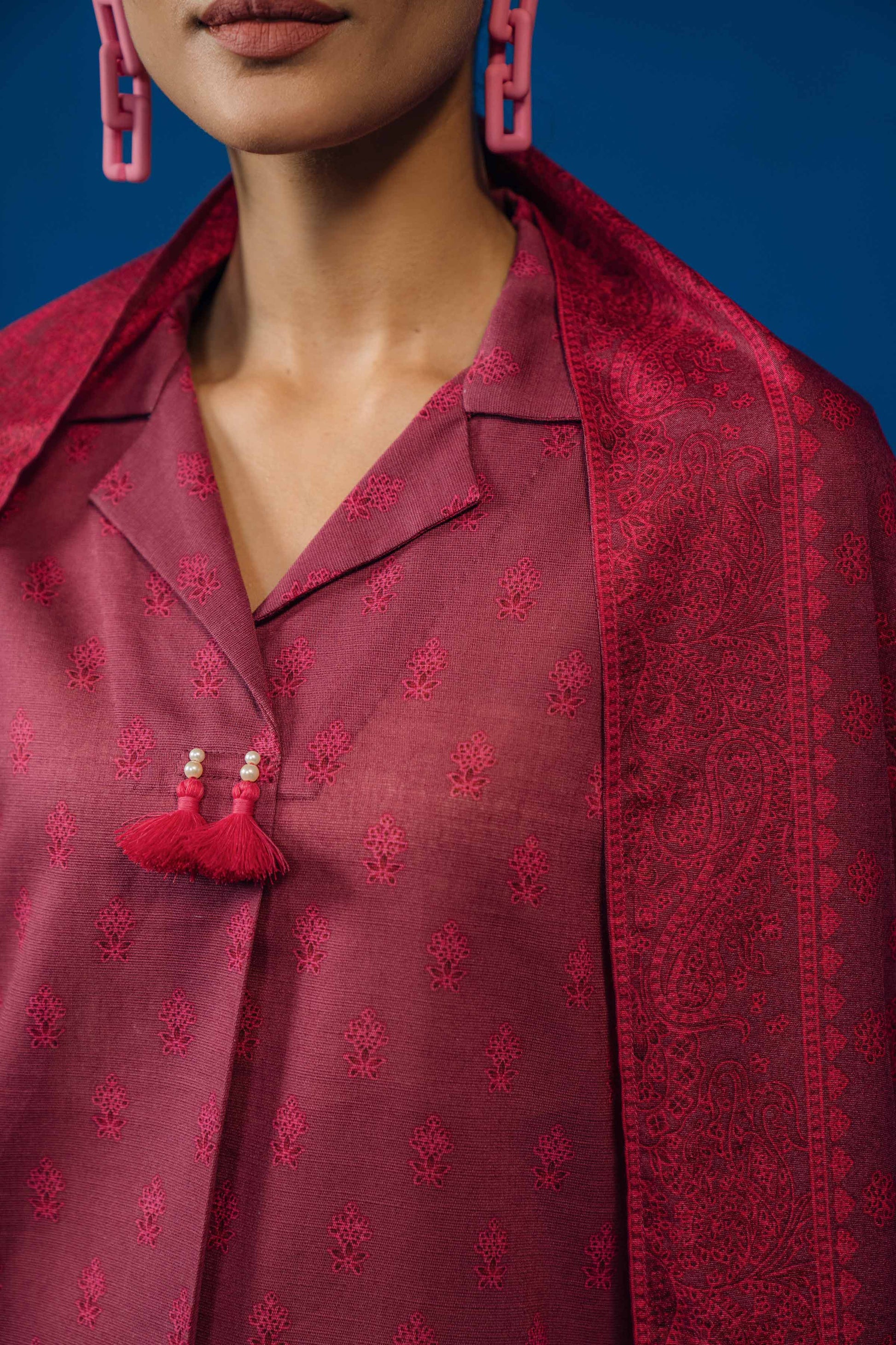 Ethnic Printed Style Shirt with Dupatta and Trousers