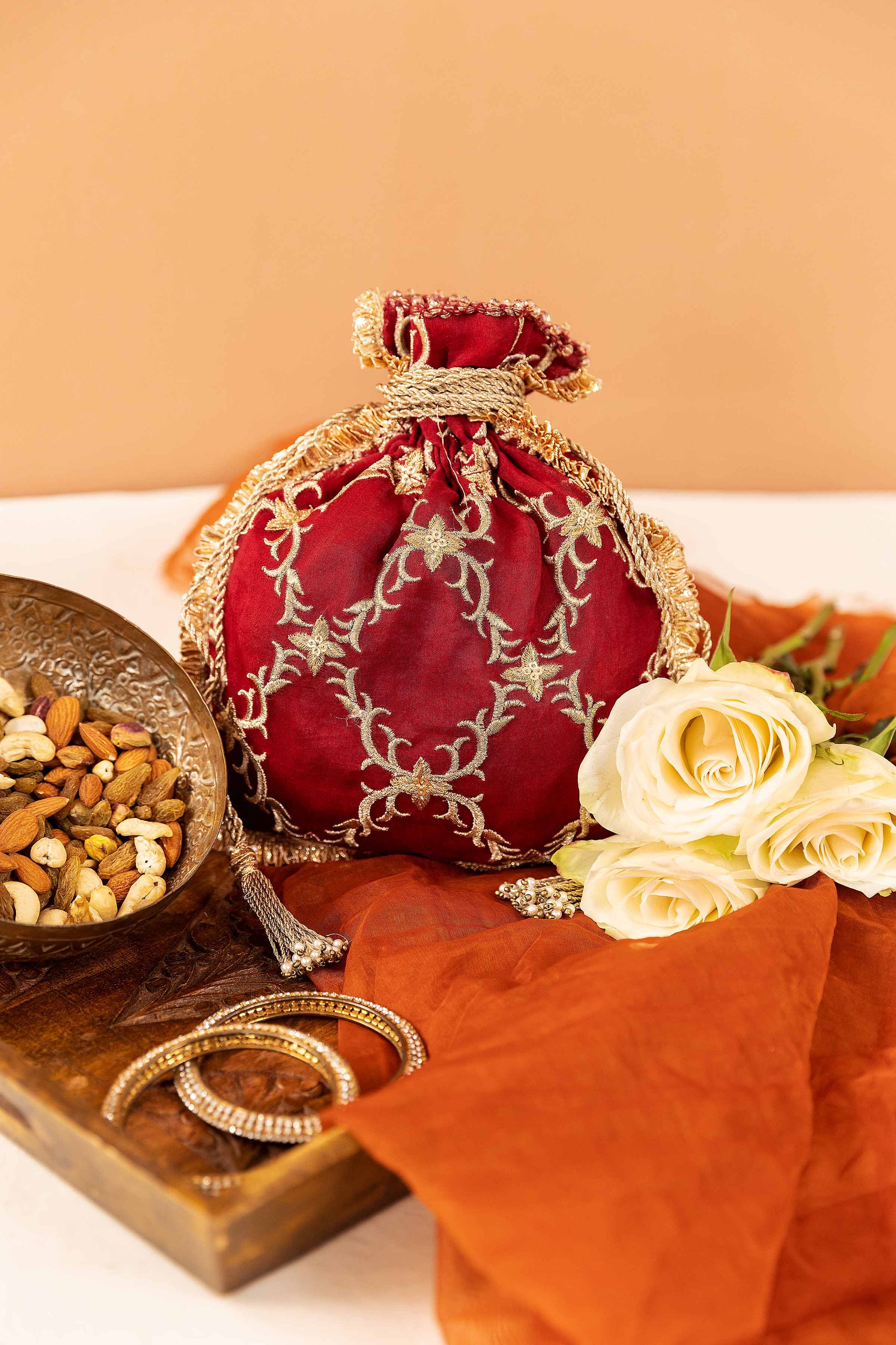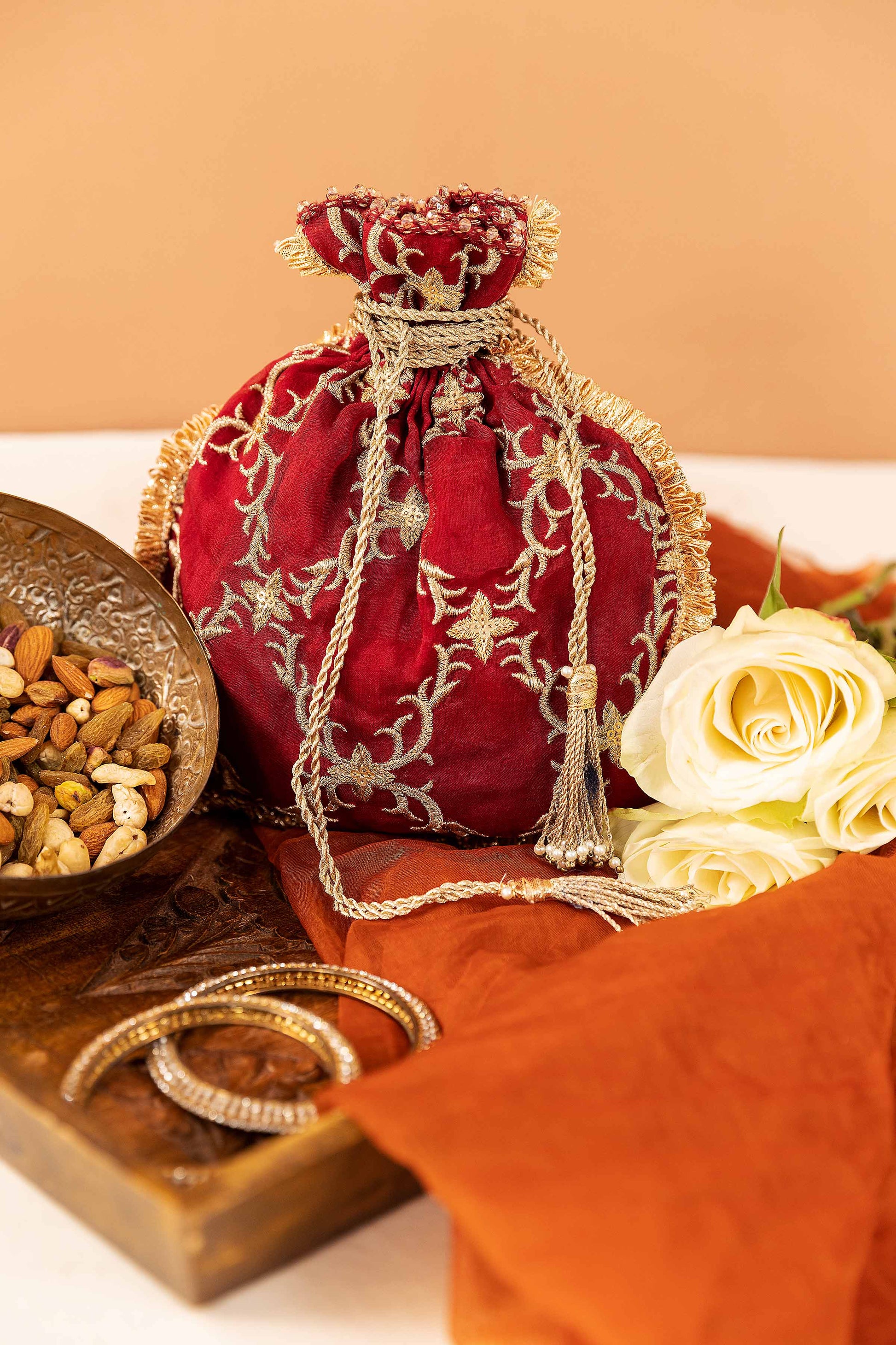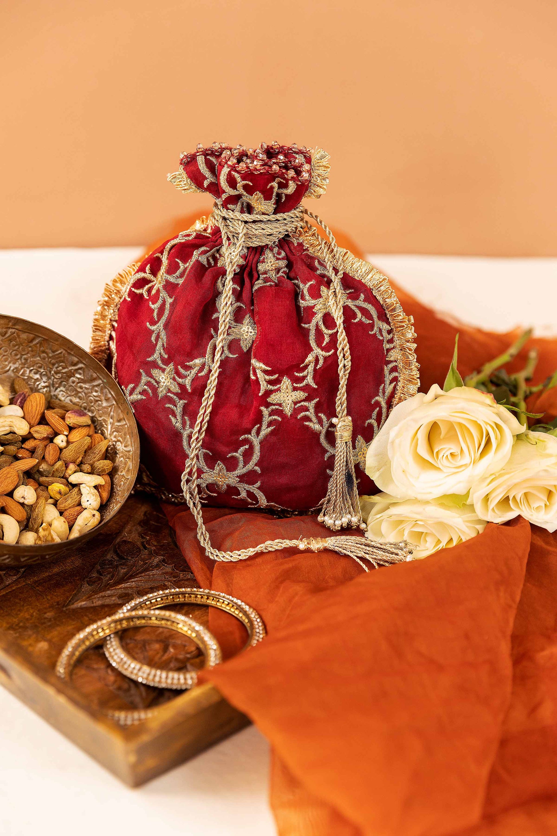 Embroidered & Embellished Pouch With Dorri & Tassels Detail