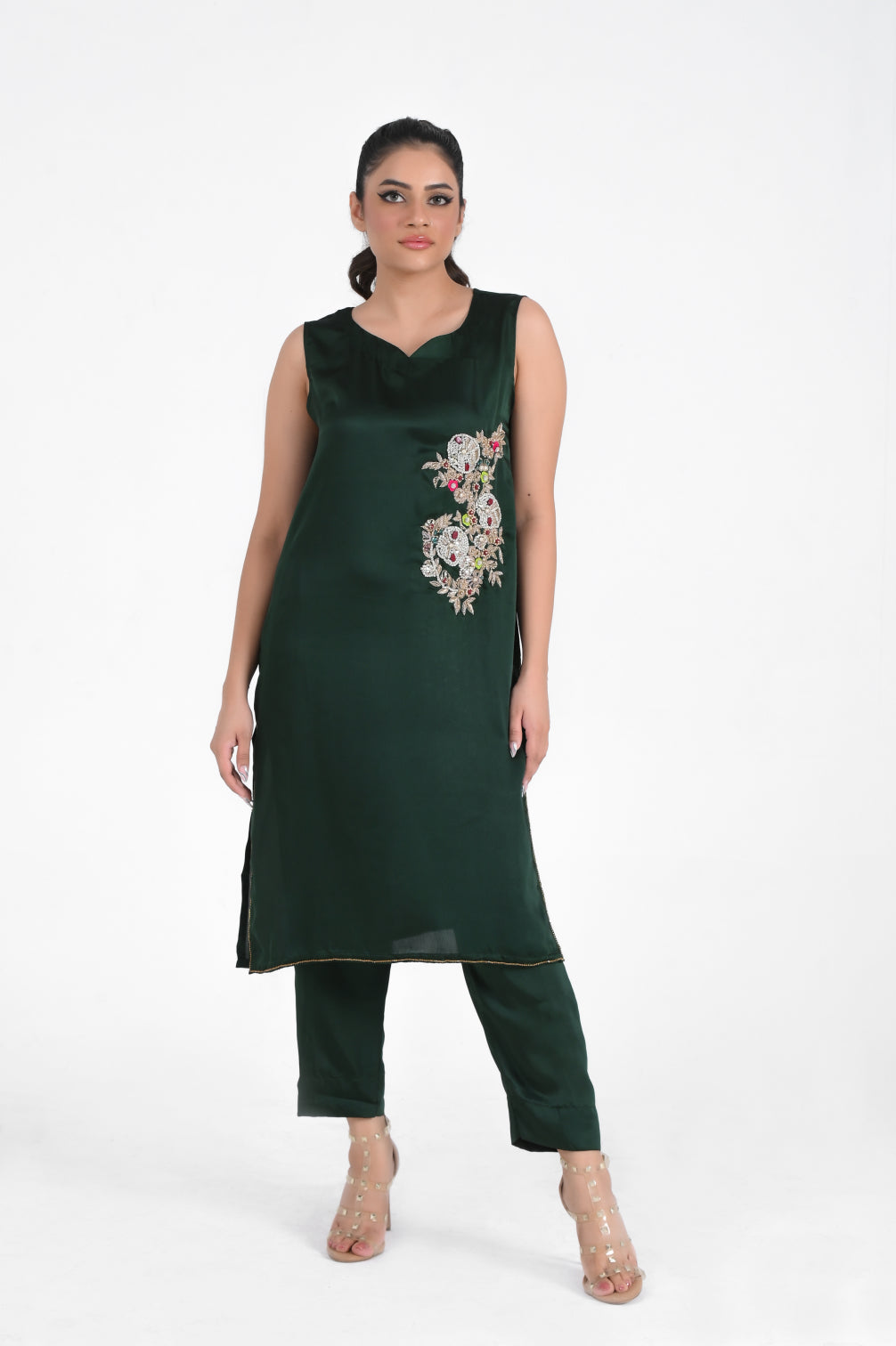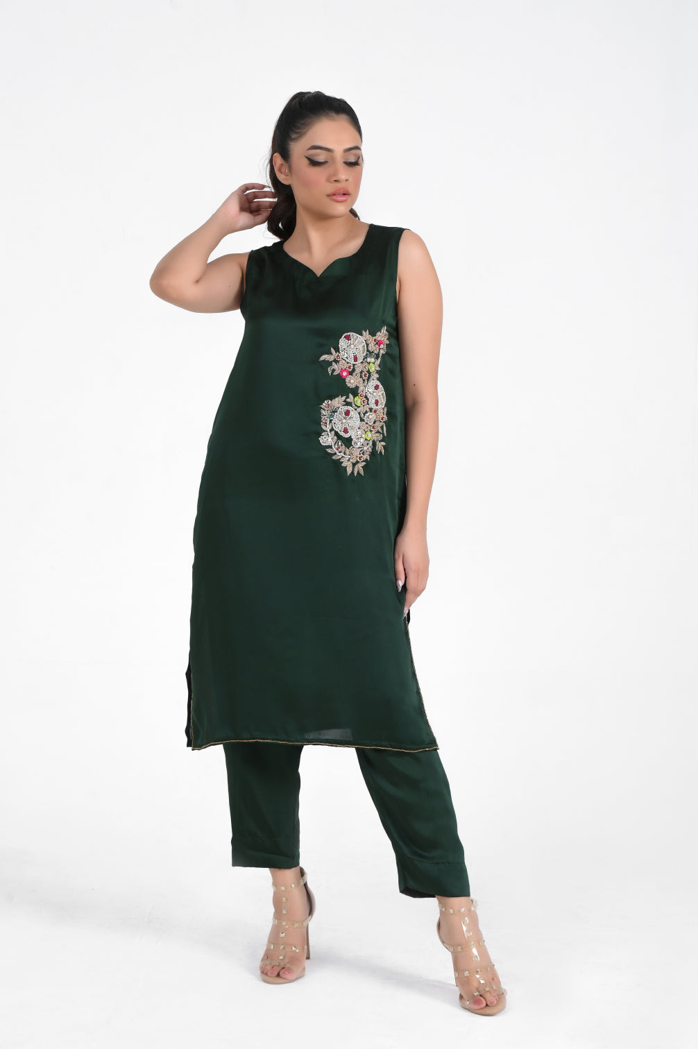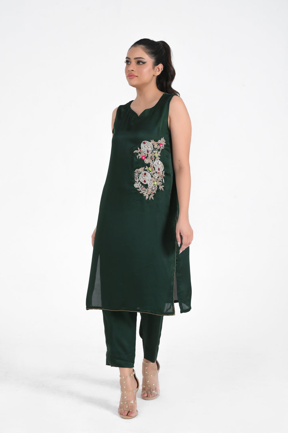 Heavy embroidery and adda work bunch on side of shirt