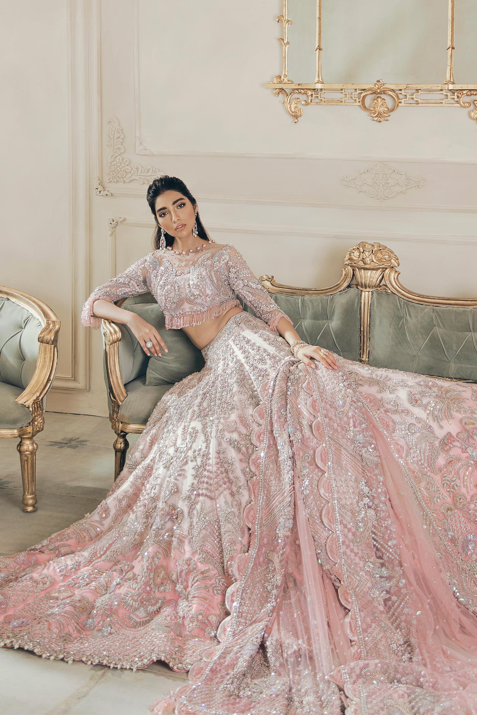 Dainty hand embellishments, soft feminine colors and the perfect blend of traditional craft and modern sensibility are the hallmarks of our bridal couture. You are requested to consult with one of our designers via WhatsApp link provided to assist you regarding complete details for your outfit's composition and care.