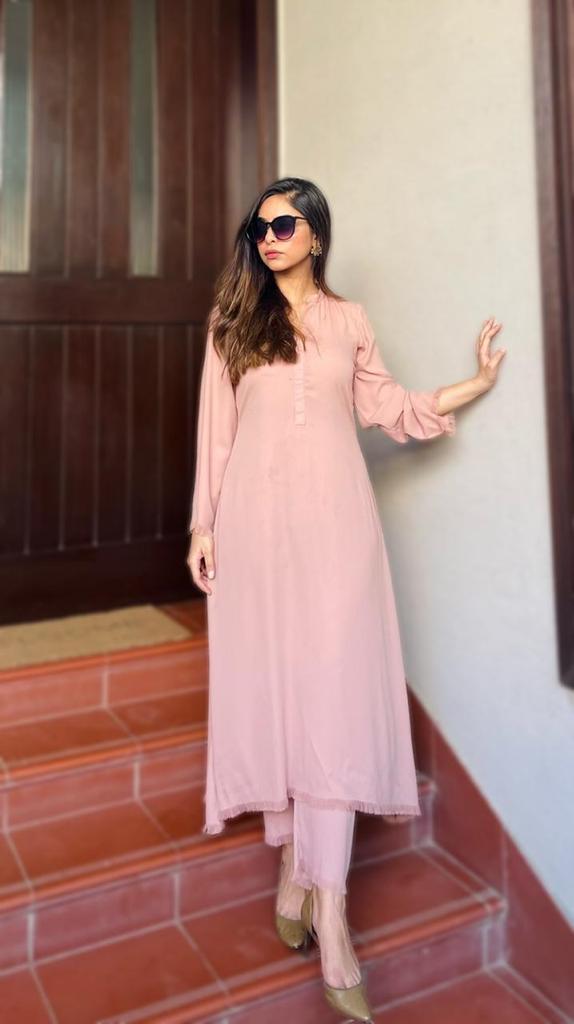 Tea rose is a georgette crepe smartly stitched co ord set. Shirt and pants are included.