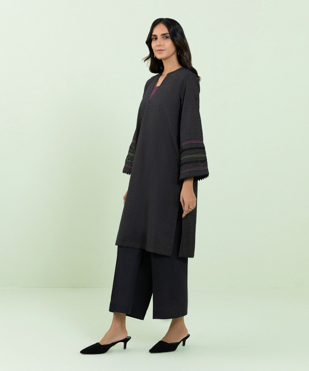 Dyed Front with Lace, Dyed Back, Full Sleeves, Round Neckline with a slit