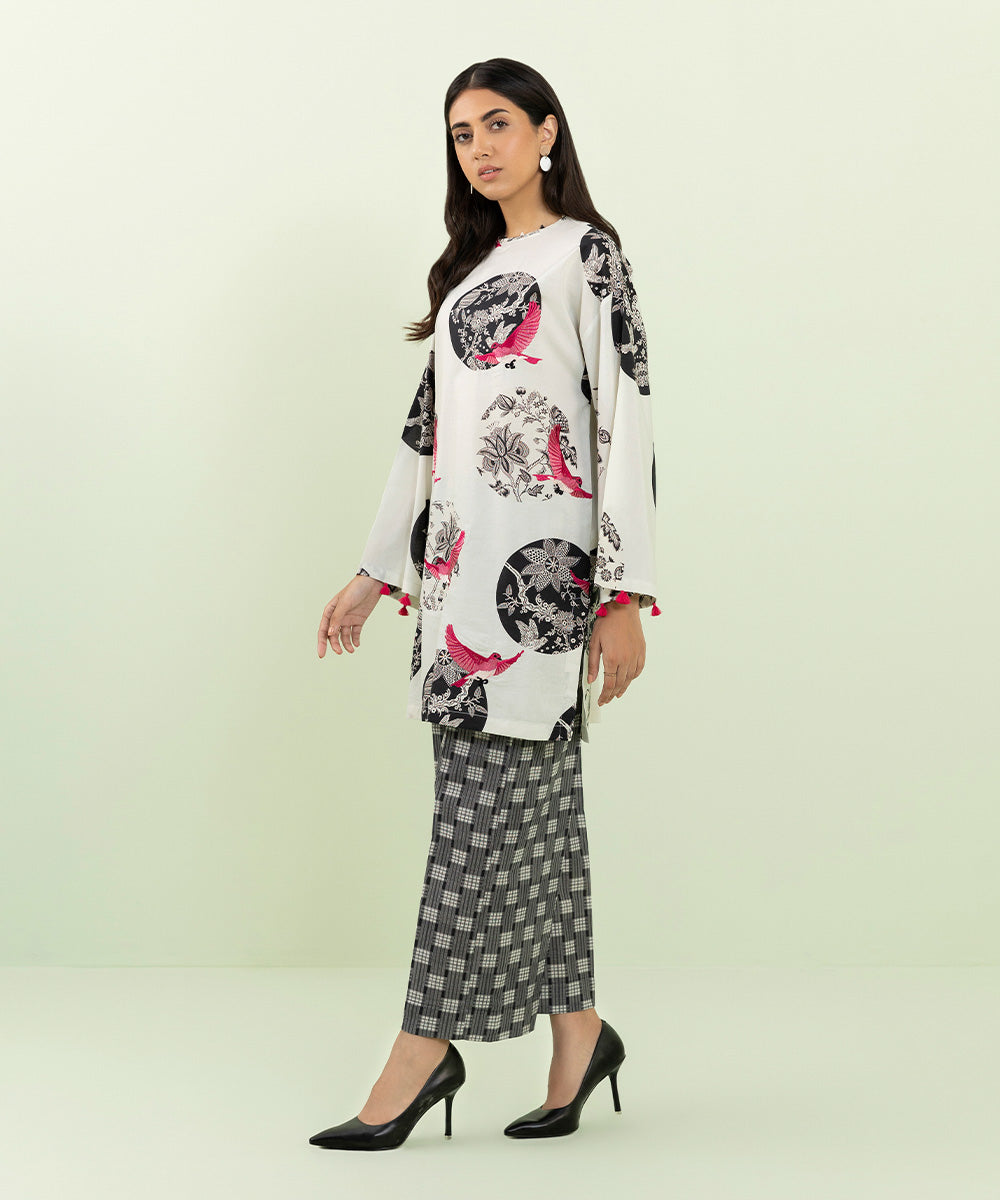 Our white cotton viscose straight kurta features intricate embroidery patterns.