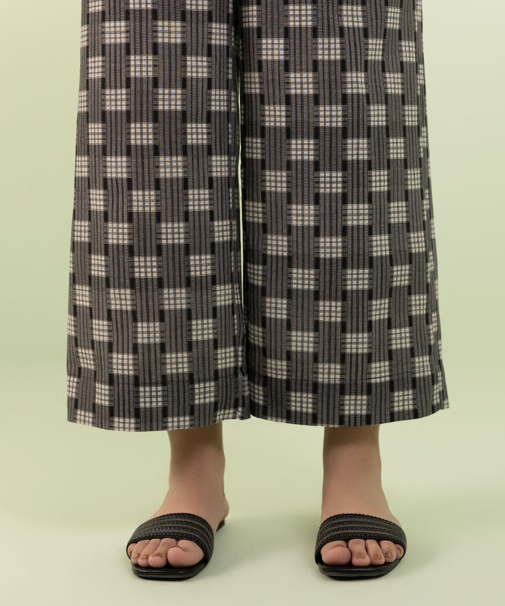 Elevate your outfit with our printed khaddar culottes in black.
