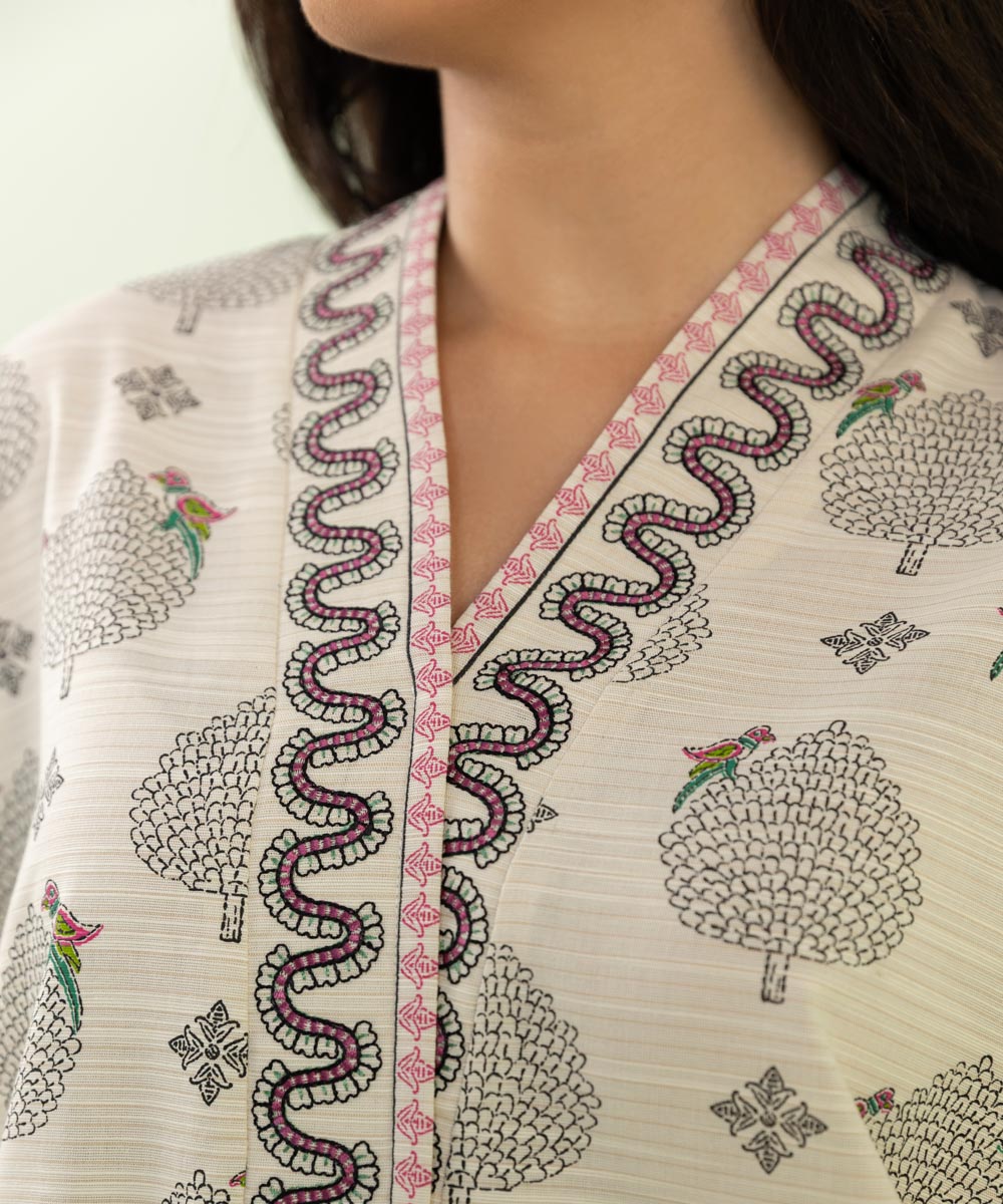 Our off white zari khaddar straight kurta features intricate illustrations and a Y-neckline.