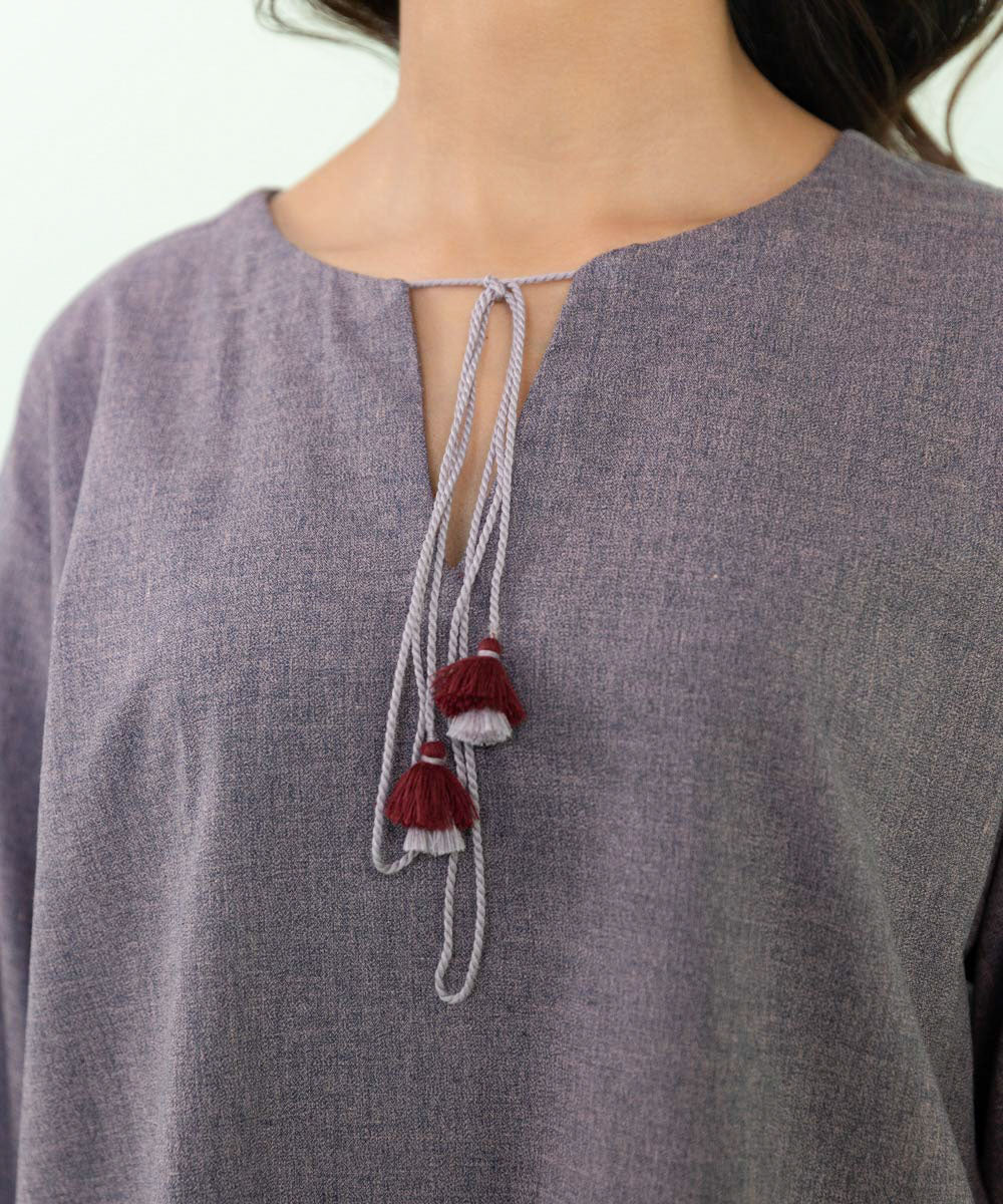 Dyed Front with Embroidery, Dyed Back, Full Sleeves, Round Neckline with a slit