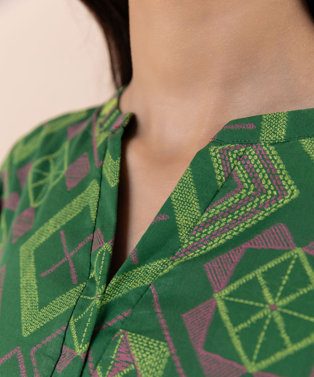 Envelope yourself in intricate patterns with our green straight silhouette paired with shalwar and a jacquard dupatta.