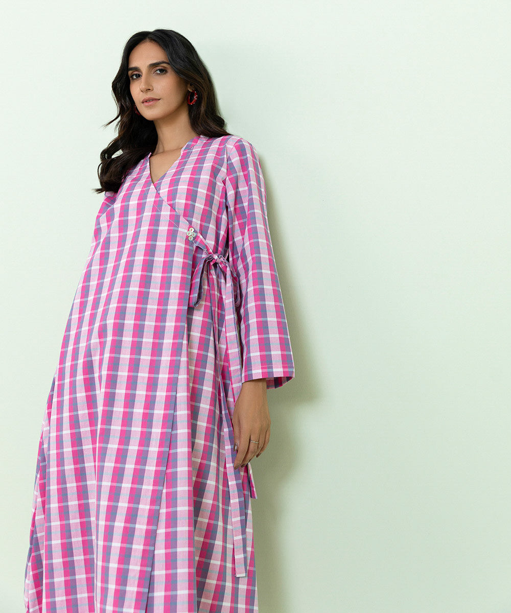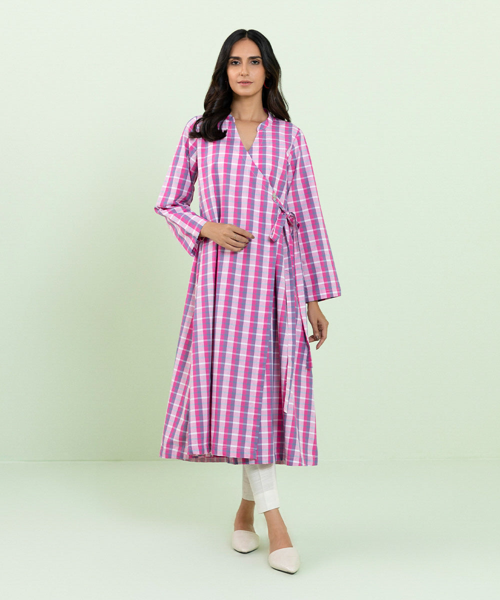 Elevate your daily style with our front open flared shirt in pink featuring a V-neckline.