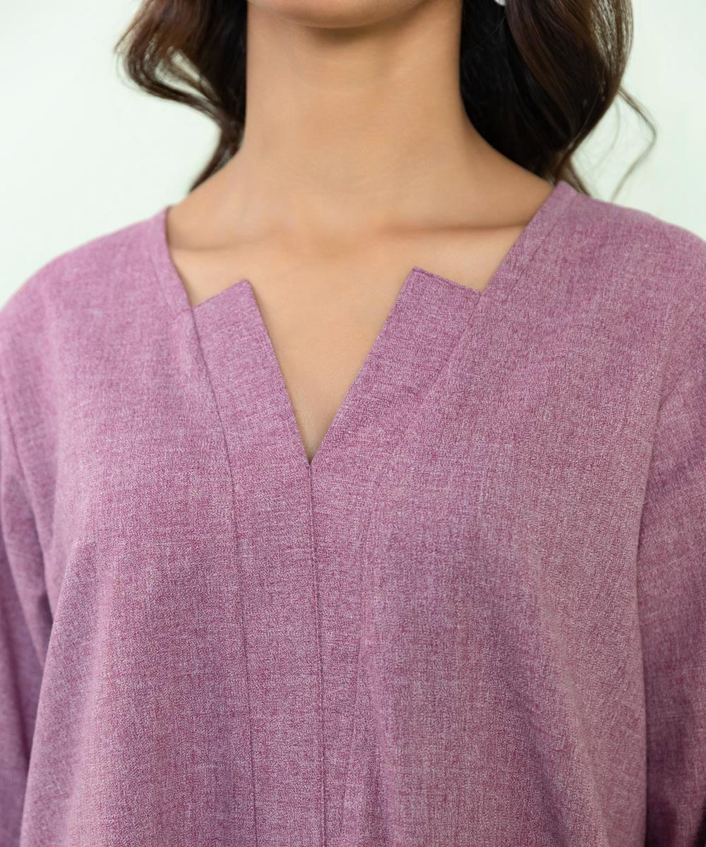 Elevate your style with our mauve textured cotton kameez and straight pants.