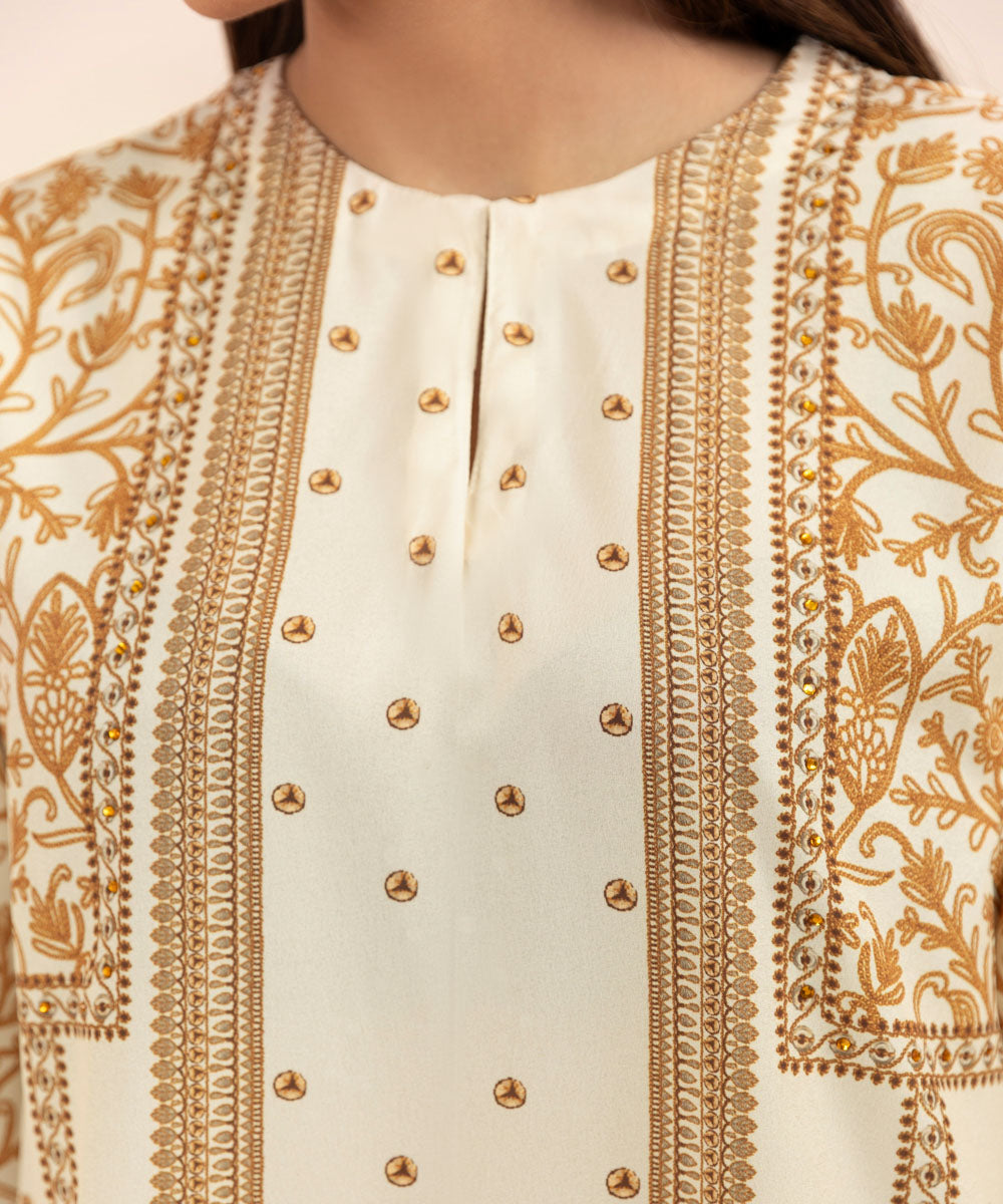 Step up festive style with our off white two-piece accented with intricate detailing paired with straight pants.
