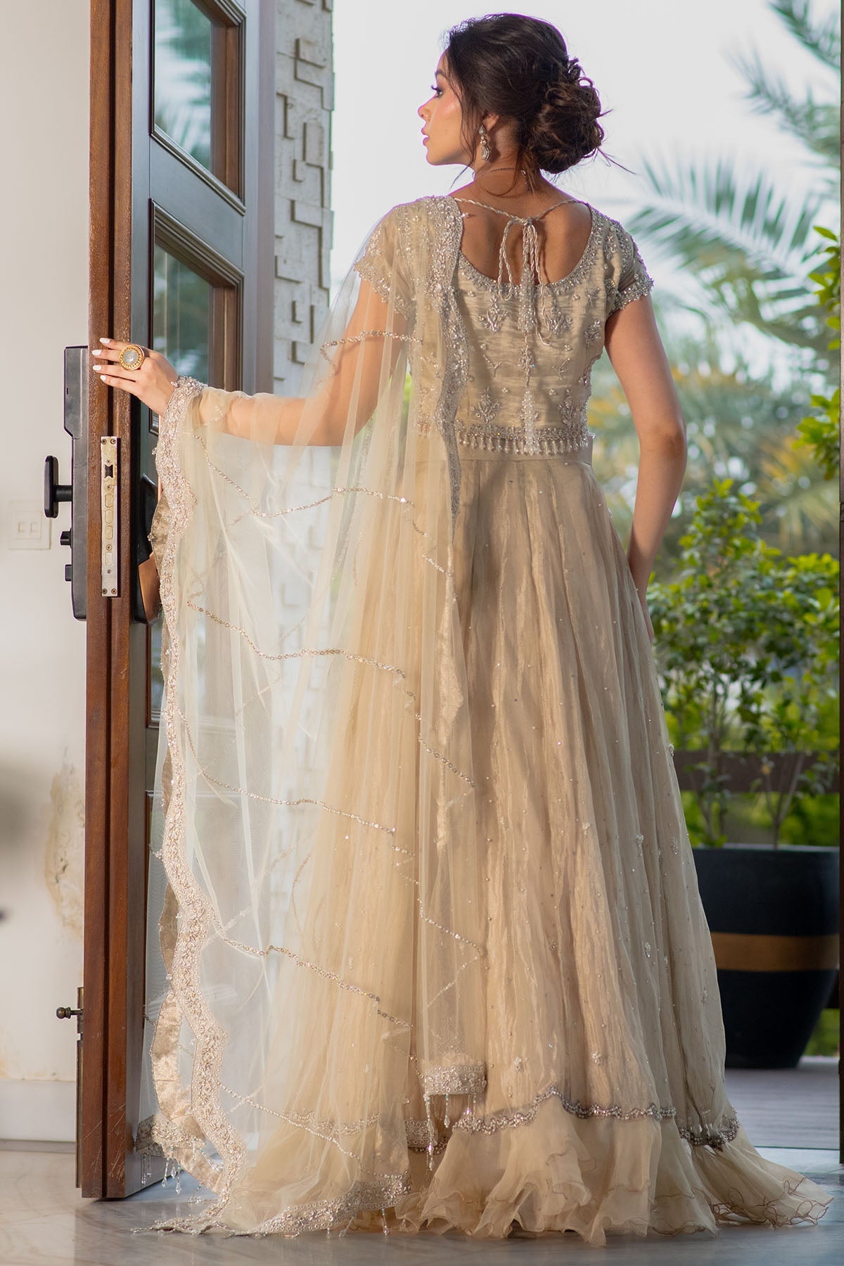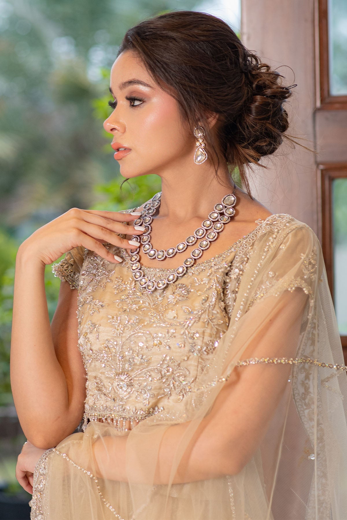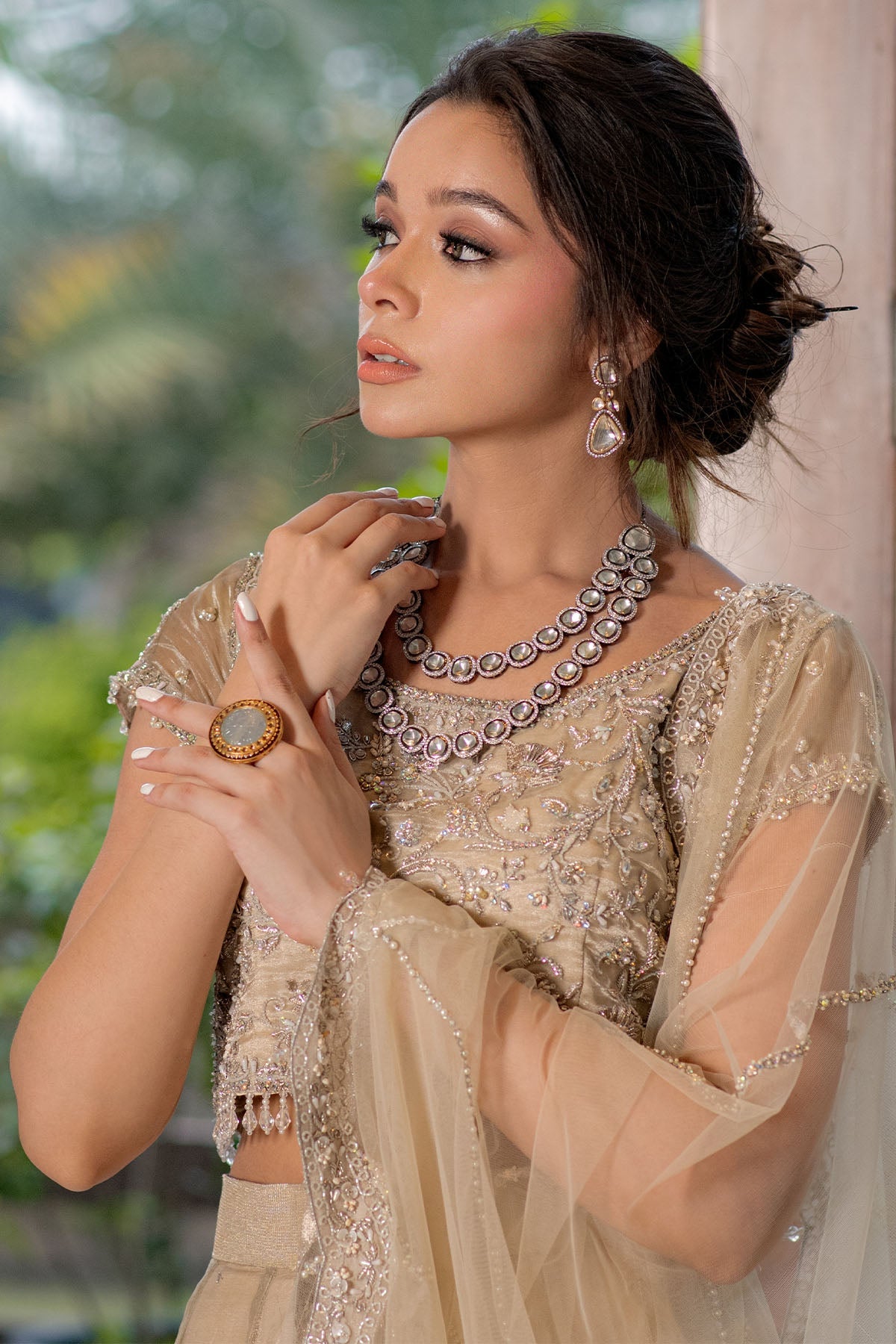 The finest craftsmanship in creating the lehenga choli. This dreamy choli is richly embroidered with zardozi and resham and paired with a heavily worked tissue lehenga with scalloped net dubbatta. The intricately embroidered and adda work completes the look for any kind of formal event.
