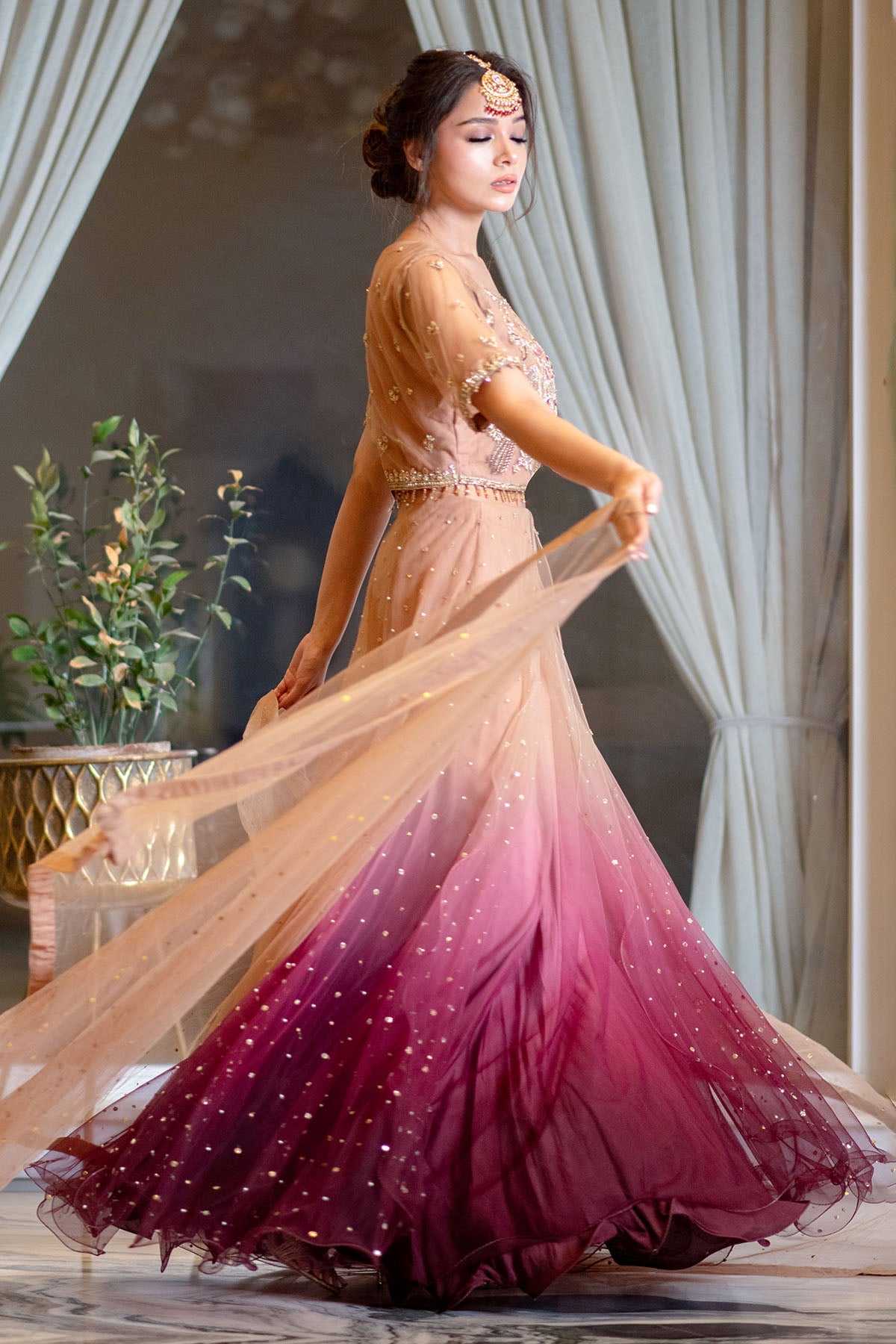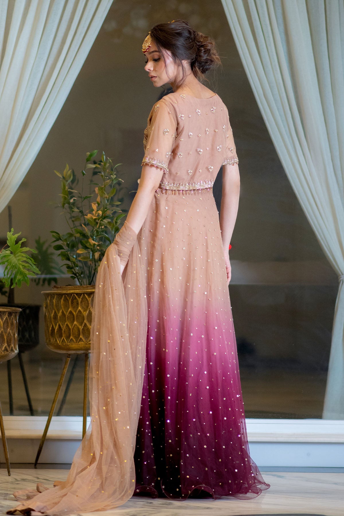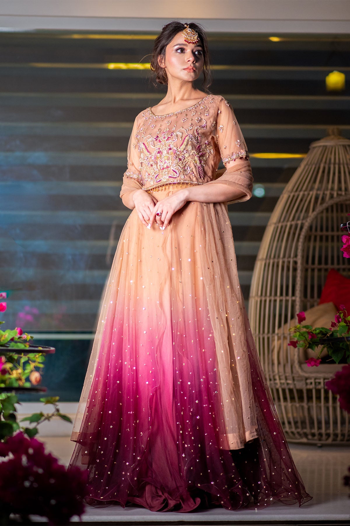 Lehnga Colour: ombré from pink to coffee browns