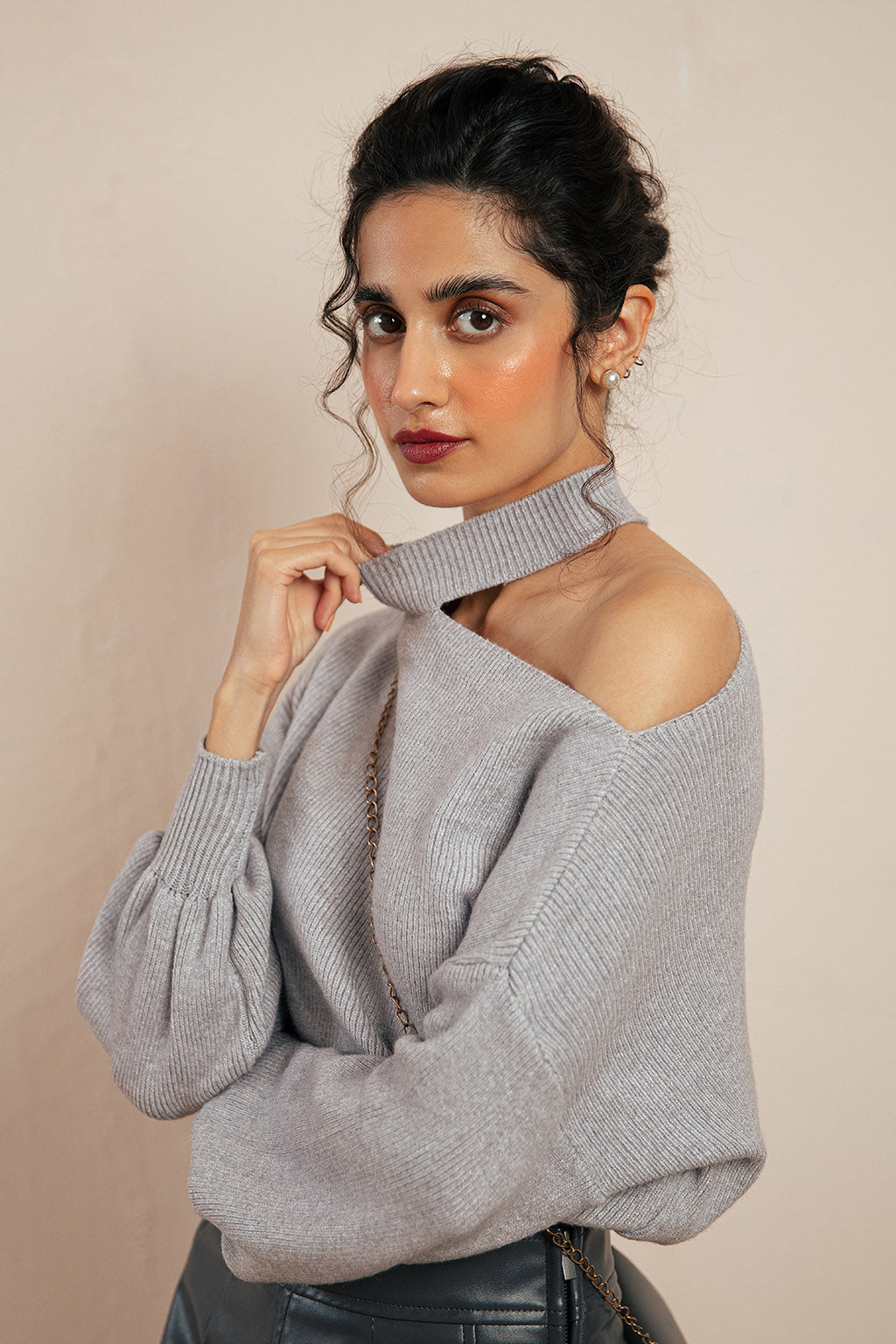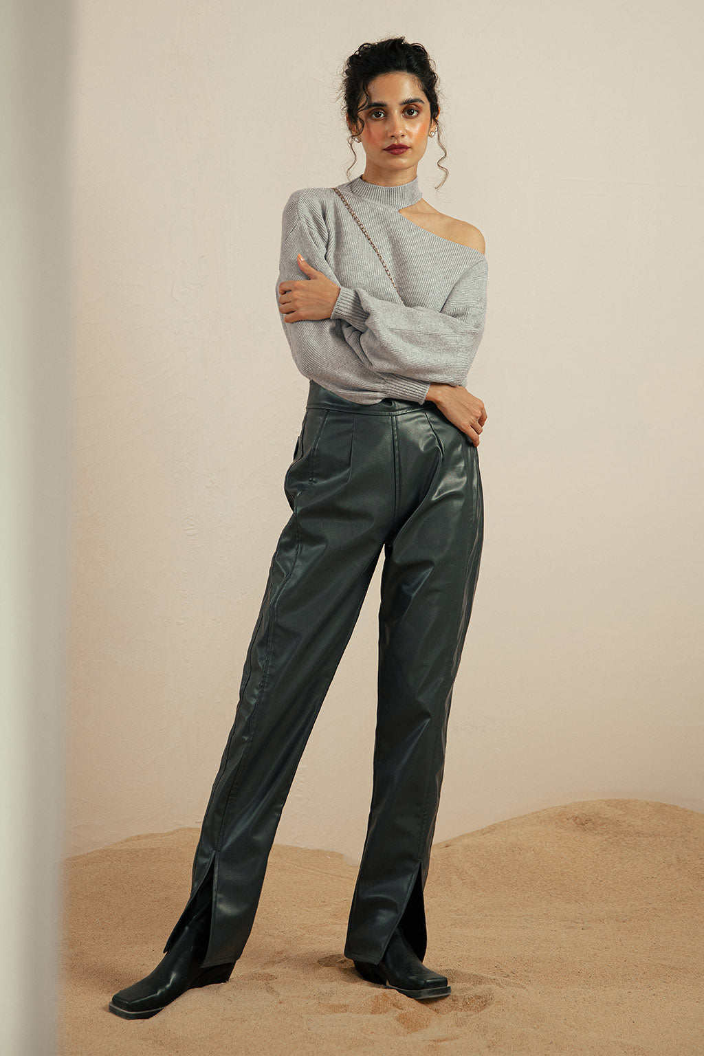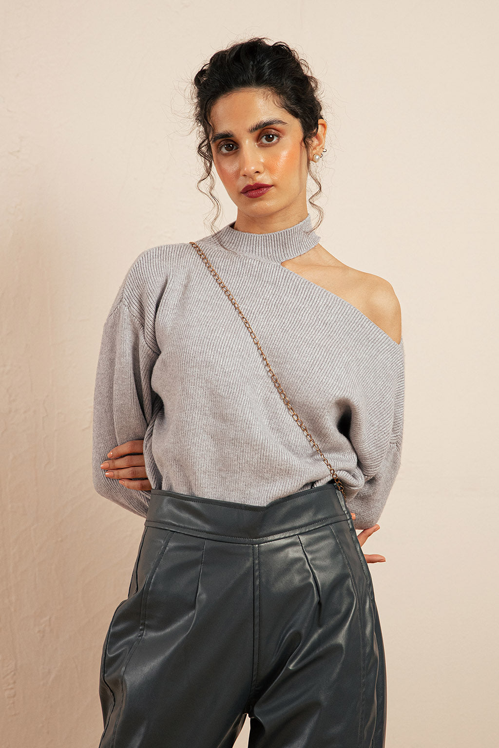 - This super snug sweater is made from a warming Wool , topped with a high crew neck. Long sleeves with ripped hem