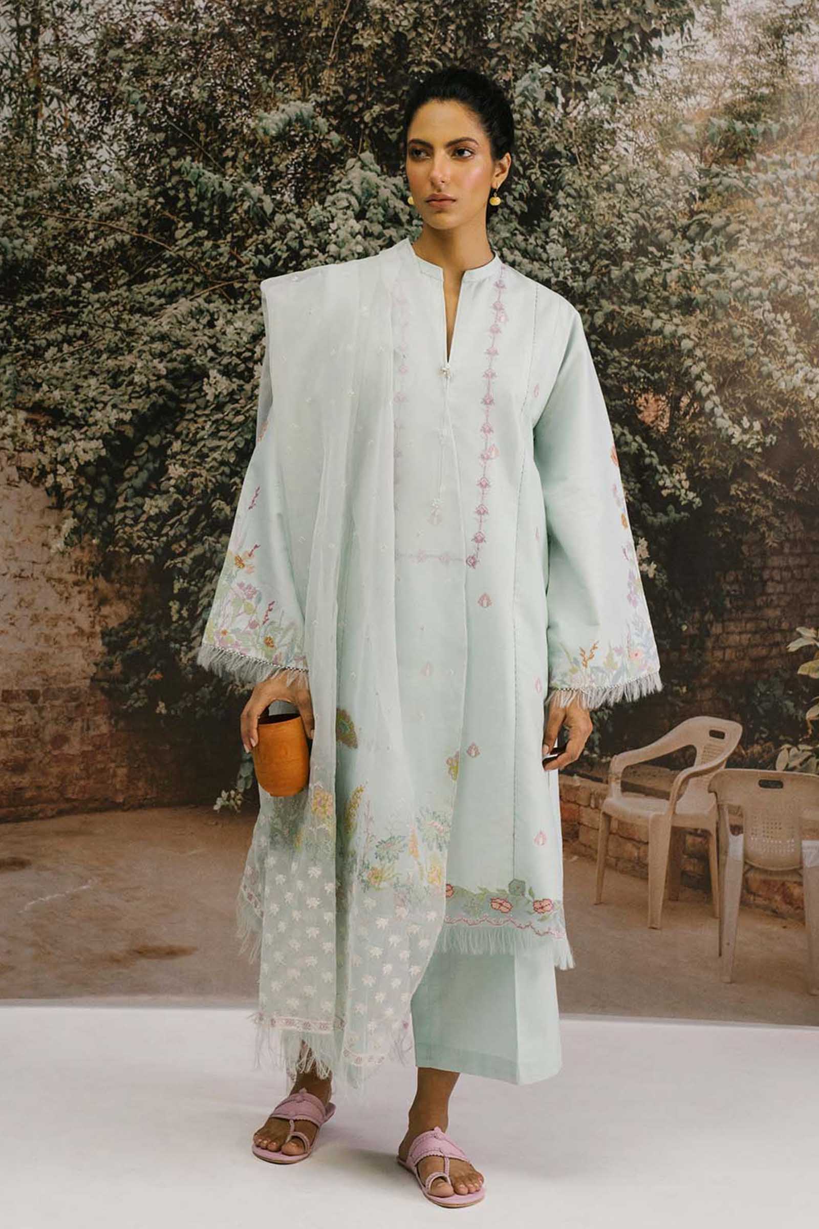 Embroidered organza dupatta 2.65yard