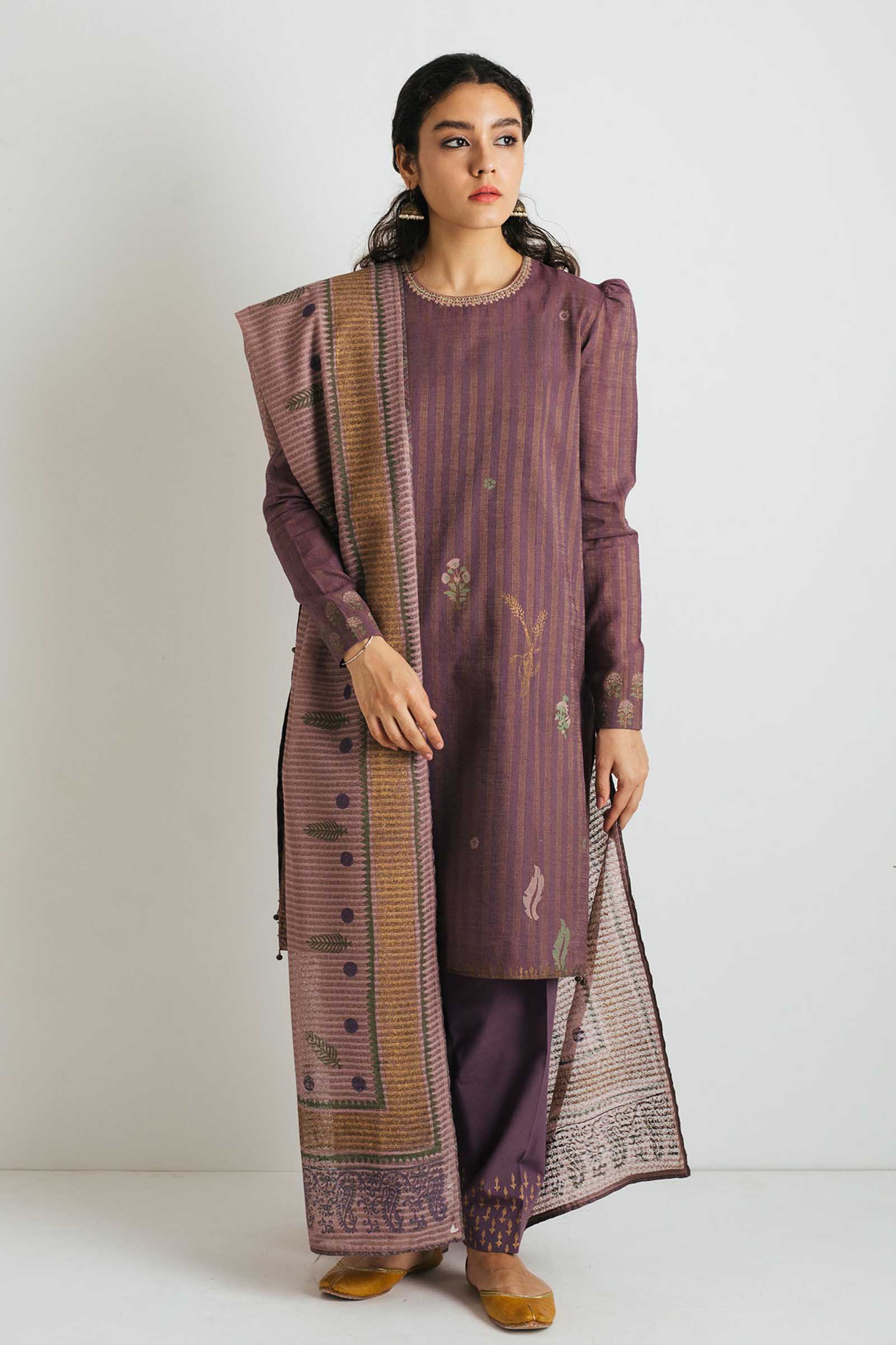 paired with our signature block printed salwar and lilac block printed dupatta