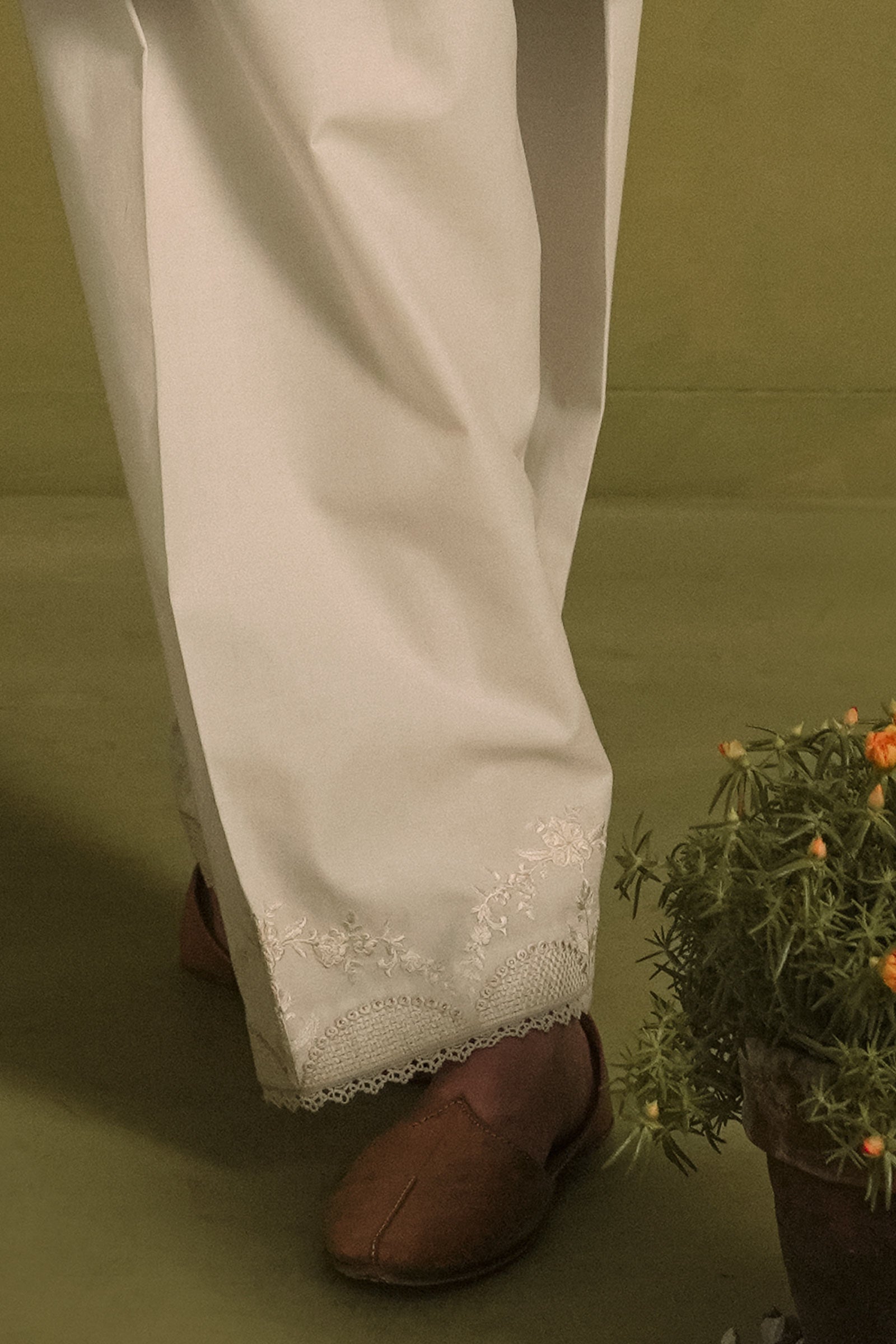 A regular-fit shalwar with intricate resham embroidery.
